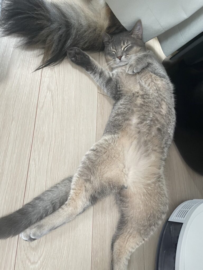 ビビリで普段隠れてるのですが、実は1番甘えん坊で、ぽんずや私に「撫でて〜」と寄ってくるのがすごく可愛いんです(笑)