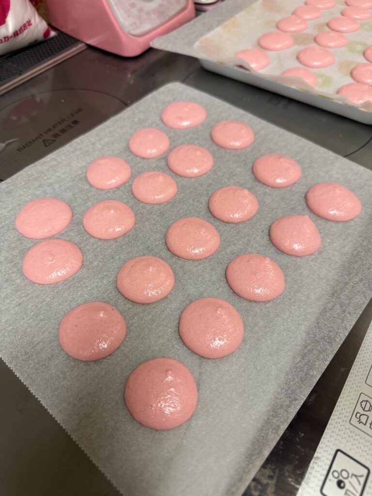 作りました^ ^マカロンの材料を混ぜてる写真を夢中になりすぎて撮るのを忘れてしまいました…(泣)