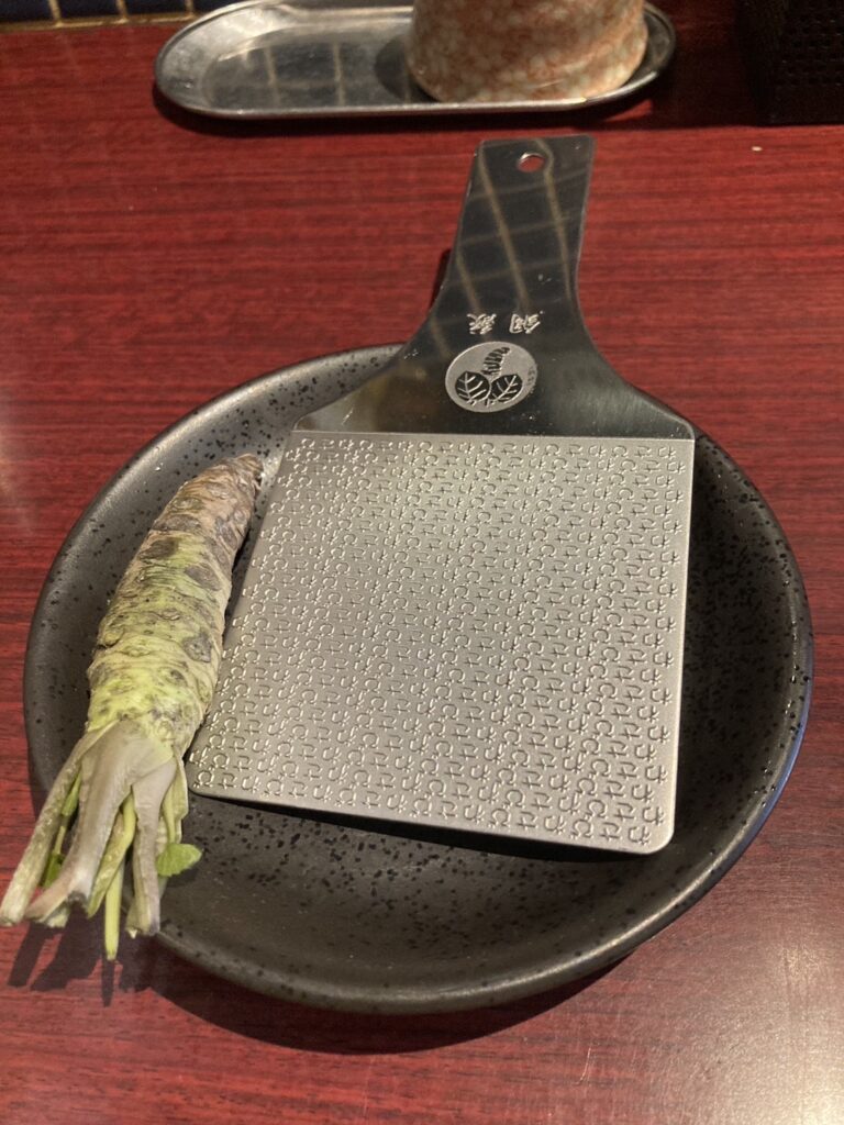 さらに驚いたのが、伊豆の生わさびが丸ごと1本ついてきて、自分ですって食べるスタイルだったことです(゜o゜)