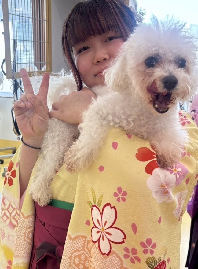 2年時担当犬の、ボロニーズのおぼろくんとツーショット!