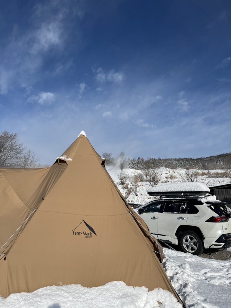 ストーブを持参してきたので、冬でもテントの中は暖かいです!