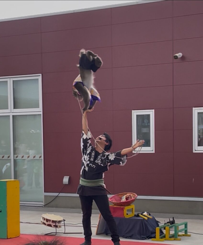 台から台へ逆立ちで飛んで渡っていたり、大道芸人の手のひらに飛び乗ったりしていて、とっても面白かったです!!
