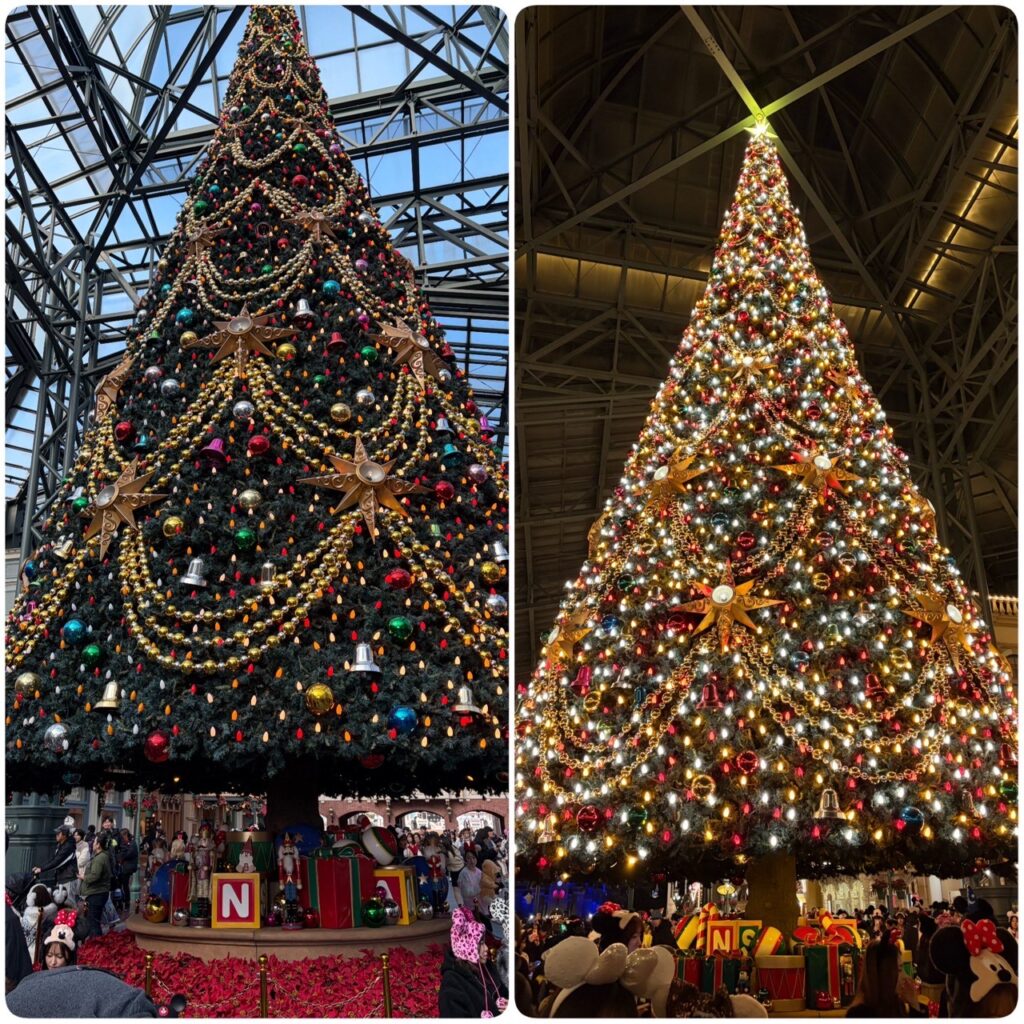 パークに入るとまず目に入った超巨大なクリスマスツリー☆