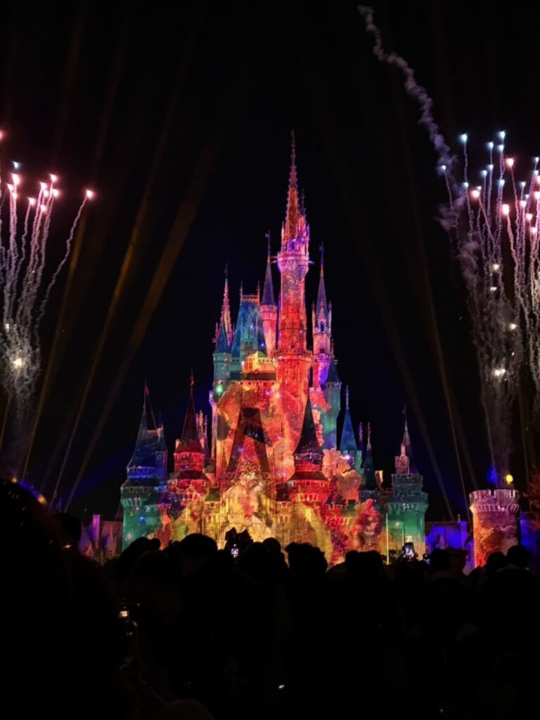 シンデレラ城に映し出される光の演出は、楽しかった1日を締めくくる最高の思い出になりました